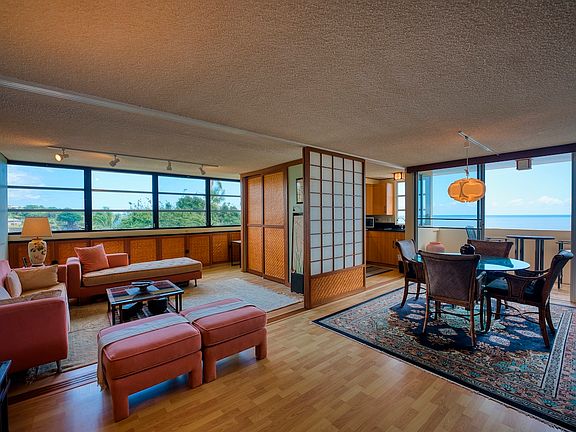 Experience the beauty of Bayshore Towers, where the Pacific Ocean and Hamakua coastline surround you. This 5th floor condo offers stunning ocean views, 2 bedrooms, 2 baths. With one bedroom wall replaced with floor to ceiling Soju doors, the space is even more inviting.