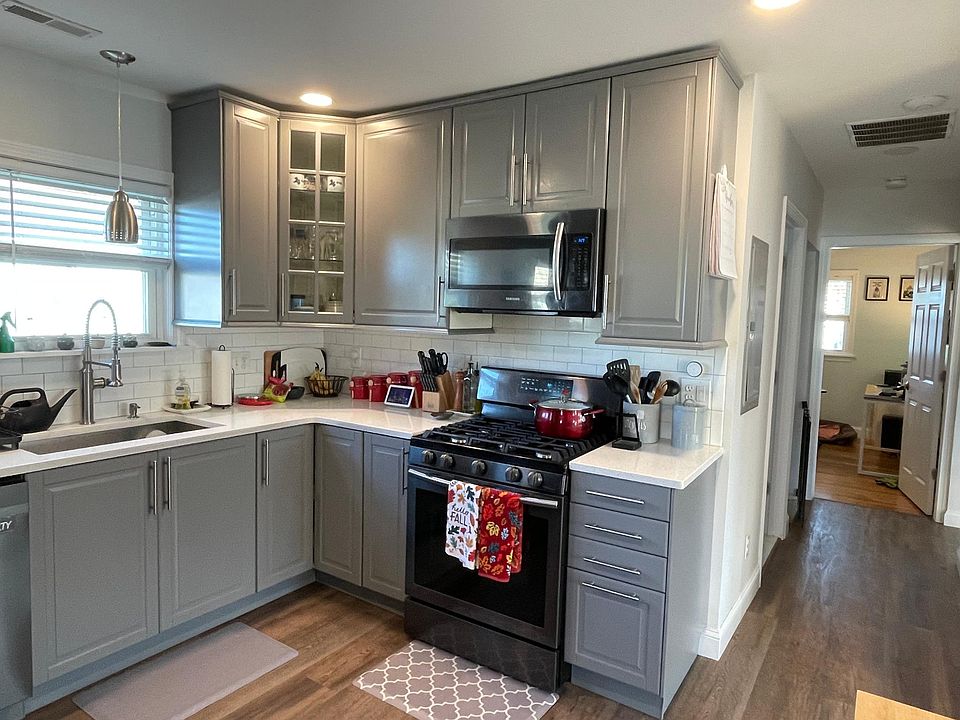 Available April 1st. This is a great 2 bedroom deal in South medford, just ten minutes to Tufts University and the band new College Avenue Green line train station. This apt features a modern kitchen with dishwasher, garbage disposal, new cabinets and granite counter tops. Other features include UNIT LAUNDRY, front and back porches, central air conditioning, basement and attic storage, 1-2 off street parking spots included, electric car charger hardwood floors and open concept layout. All bedrooms are good sized. Tenants pay their own utilities. No dogs please. Available April 1st, inquire today.