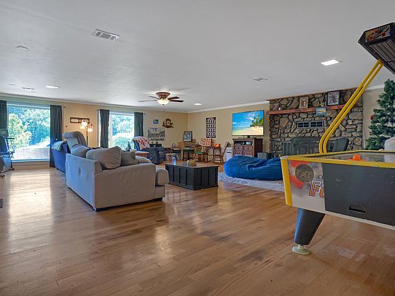 If you are looking for a Lake Front...Gorgeous two story with lots of updates in a peaceful country setting on Mill Creek. Spacious, open floor plan with large windows looking out on the beautiful scenery. Walk through the front door into a huge living room with a big beautiful fireplace. The dining room, kitchen and deck look out over Mill Creek. Step down into the utility room and an office/bedroom with it's own entry and ''throne room''. The over-sized, 2-car garage is heated and cooled. The luxurious Master Suite also looks out over Mill Creek and has a huge bathroom with garden tub and separate shower. 3 bedrooms and 2.25 bathrooms upstairs. Separate living space downstairs (can be rented out!) with 2 bedrooms, 1 bathroom, kitchen, dining room, huge living room with fireplace.