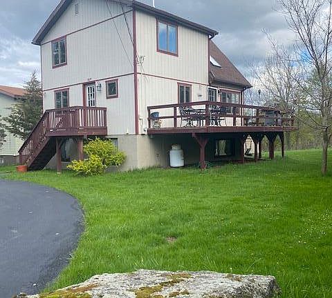 Beautiful move in ready, turn key home in The Hideout gated community, walking distance to pool/playground/tennis courts! Near golf course/recreation center/gym/restaurant! 2 beaches/pools, ski/tubing hill, & much more! Lovely Flat lot ,circular paved driveway! Home has gleaming hardwood floors and tons of natural light, large deck with beautiful views!
