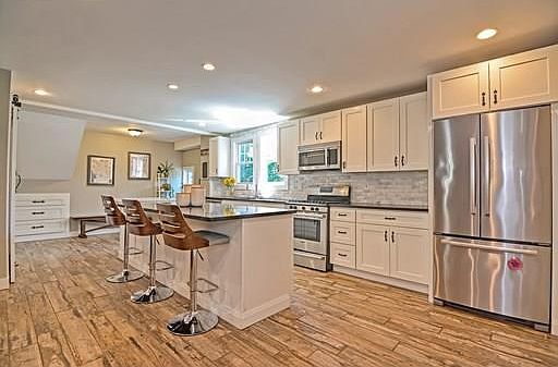 OPEN HOUSE CANCELLED! Beautifully Updated 4 bed, 3 bath, over 2100 square foot condo in the much sought after Historic Woodbourne Area. Spectacular Open Floor Plan with Gourmet Kitchen that includes Italian Ceramic tile flooring, Stainless Steel Appliances, Wine Cooler and Island with upgraded Countertops. The open plan Living Room has a gorgeous working 11' wide fieldstone fireplace, Beautiful Maple Flooring, Recessed Lighting, and beamed ceiling. Master Bathroom boasts upgraded marble flooring, double vanity and Tiled Shower. Brand New Finished basement with Updated Bedroom + Bathroom has a separate entrance which could be used as an in-law, teen suite, au pair suite, or even a potential rental space. Private Deck off living room creates great outdoor space. Plenty of Parking with 2 Garage Spots as well as an oversized driveway for at least 4 other cars. Washer/Dryer in Unit! Walking Distance to the Forest Hills station.