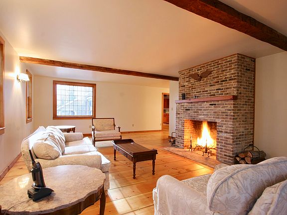 On 15 secluded acres of woods, this well built “Bow House,” boasts a clean design & spacious interior. Lovely antique feel with wide pine floors, exposed beams in kitchen & windows with wood shutters. The living room has a big masonry fireplace and three sides of windows for optimal light. The house has 4 bedrooms and a den that could serve as 5th bedroom. First floor master bedroom has ample closet space. Upstairs has 3 spacious guest bedrooms that share a full bath. House has central a/c, with a bonus of 3 additional legal building lots and a detached 2 car garage. Enjoy all the Berkshires has to offer in this country home.