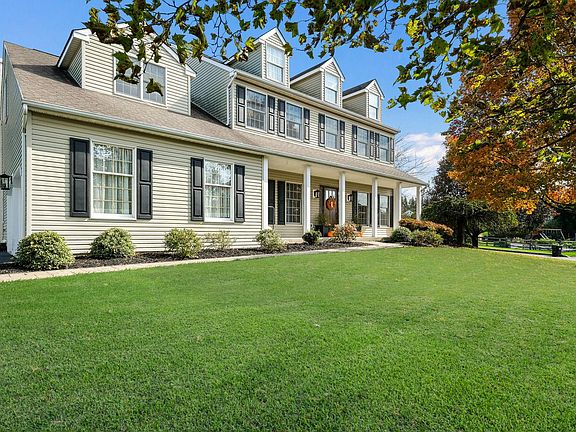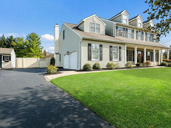 Pristine 4 Bedroom/2.5 Bath Colonial now available in desirable Doylestown Knoll! This Classic Farmhouse- Style Home will draw you in with its Paver Walkway leading to the Front Porch and Striking "Therma-Tru" Front Door! Step Inside the Two-Story Foyer with Newly Refinished Hardwood Floors and a Classic Front Staircase. Spacious 9 ft. Ceilings can be found throughout the First Floor. The Living Room features Floor-to-Ceiling Windows, Chair Rail, and Crown Molding that is OPEN to the Dining Room. The Dining Room with Views of the Backyard is the perfect size for Entertaining. A First Floor Office with French Doors and Built-in Shelves is just off the Foyer. The Light-Filled WHITE Kitchen features Granite Counters, a Butcher Block Contrasting Island, Lantern Pendants, Tile Backsplash, Newer Bosch Range & Dishwasher plus a Pantry. The Kitchen is OPEN to the Family Room with a Vaulted Ceiling, Skylights and a Brick Fireplace with Slate Mantle PLUS...a Back Staircase! The Laundry Room with Speed Queen Washer/Dryer (included) and Wood-Look Tile is conveniently located just off the Kitchen and the Two Car Garage. Glass Sliding Doors lead from the Breakfast Area to the Newer Composite Deck with a Private, Fenced-in Yard. For Extra Storage, there is also a Vinyl Sided Shed that is included! Upstairs, the Primary Suite features a Vaulted Ceiling, Two Closets and a Stunning Renovated Primary Bath with Quartz Double Vanity and Oversized Custom Tile Shower. Three Good-Sized Bedrooms and a Hall Bath complete the Upstairs. The Finished Basement features Stone Accent Walls, a Beamed Ceiling, Granite Bar, and Updated Pendant Lighting. There is also an Exercise Room with French Doors plus a Storage Room. Pride of Ownership is seen throughout this Home! Award Winning Central Bucks School District. Doylestown Knoll is minutes from Central Park, Terrain, Doylestown Borough and All Major Highways. Welcome Home! ***Showings begin on 10/27/23 with an Open House on Sunday 10/29/23.