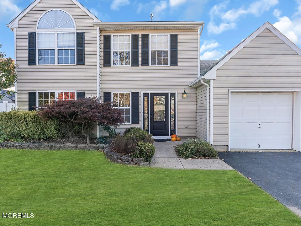 Welcome to Parkside At Howell. Don't miss this opportunity...Ready to move in 3 bedroom, 2.5 bath Worthington Model. Features formal living room, formal dining room, freshly painted and brand new flooring. Newer eat in kitchen, Cherry cabinets, granite breakfast bar and all stainless steel appliances, leading to family room with brand new flooring, cathedral ceiling and shiplap decor. Primary suite with cathedral ceiling , his/her closet, updated primary bath. Brand new carpet throughout all bedrooms. Gorgeous entertainment backyard with inground pool! 2-car garage which a portion has been converted to a playroom (can easily be converted back if desired). Grass/Outdoor Fire Pit has been digitally enhanced for illustrative purposes ONLY. Newer roof, two zoned heating and cooling, newer furnace, newer hot water heater Steps to pickle ball court ,playground, basketball court, baseball fields! Close to GSP and I 95, New York Transit. Point Pleasant & Manasquan Beaches. Don't delay, this one won't last.
