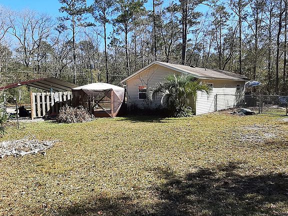 PLEASE NOTE: CASH OFFERS ONLY! Single Family Home, built on one of two lots BOTH LOTS go with house; Two Bedrooms, One Bath; 685 sq. ft. heat/air; Interior Laundry Room; Vaulted ceilings in Living Room & Kitchen; Hardwood floors (vinyl in bathroom); Screen Room on front of house; Cement Patio on front (10' x 8'); Double Car Carport, rocked parking; Chain linked fenced backyard; Central Heat and Air HVAC; LED lighting and new ceiling fans throughout; Security LED lights; Currently: Aluminum Storage Building comes with the house; Currently: all electric appliances including; washer and dryer; refrigerator; electric stove; and dishwasher come with the house; Needs renovation to resolve sagging floors - CASH OFFERS ONLY Please text inquiries or offers to Rue at 850.728.7159