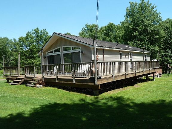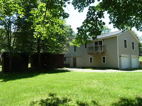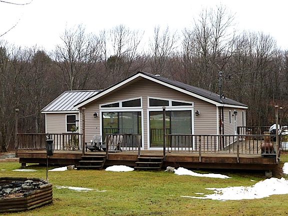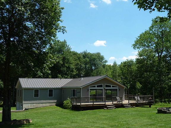 Contemporary ranch has great room with high ceilings and lots of glass, 3 bedrooms and 3 baths. Dream 650 sq ft master suite has wood floors, jacuzzi tub, double shower, walk in closet, balcony. There's a cozy family room downstairs with a very cool bar made of rock maple from a bowling alley. 932 sq ft wrap deck. Pellet stove saves on heat bills. Backup generator. Low maintenance vinyl siding and metal roof. Oversized 2 car garage has plenty of extra work and storage space. Great location between Bethel and Monticello. Quiet road. Easy access to Resorts World Casino, Rte 17, Bethel Woods. Move in ready.