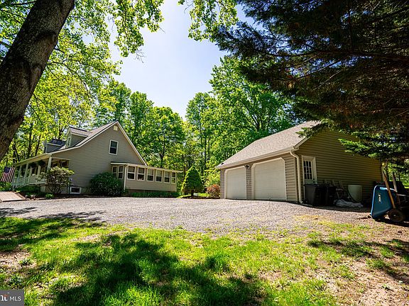 Cape Cod Nestled on a 3.50 acre lot, perfectly situated on a no-thru street. This desirable Chestnut Grove community has underground utilities. Horses are welcomed! All seasons under roof wrap porch, expansive tiered decks surrounded by privacy of the trees. Covered front porch, new roof in April 2024! This 3.5 mostly level acres has plenty of room for a pool, gardens, outdoor gaming area. Private area Firepit with space for chairs and loungers on a patio of brick pavers. Detached two car garage has workshop area plus storage space. This charming home has Primary suite and laundry on the main level. Large living room with electric fireplace, kitchen with island, stainless appliances, and dining area with double access to enclosed porch. The two upstairs bedrooms have dormers and large windows, and a full bathroom. Lower level has family room, half bath, bedroom or office, and side door entry/exit. The unfinished area contains the mechanicals, lots of storage and space for the gym! Comfortable, cozy, efficient, and adorable! You’ll see how much the sellers love this home - sad they can’t move it with them to their new location. May need rent back depending on employment start dates.