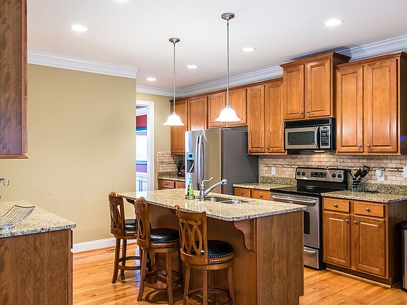 Gorgeous brick front home on a cul-de-sac lot! Formal dining rm w/trey ceilings & hardwood floors, Kitchen has SS appliances, granite counter tops & a center island. Bonus room has back stairway access to the kitchen. Master bedroom has trey ceilings and master bath has dual vanities and spa bath w/sep shower. 3rd floor unfinished attic can be used for storage or room to expand. Screened back porch overlooks lovely backyard! Large det workshop/storage shed. March '15 New HVAC main level, Roof 2011.