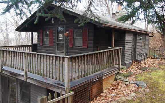 Country log home tucked away in a very private and wooded setting. 2 bedrooms, 1.5 baths, fireplace with insert. Wrap around porch and decking overlook mountain stream with some winter mountain views. You won't see your neighbors but you can get to town and the parkway in just a couple of minutes.