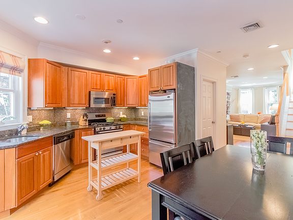 Spacious South End 2 BD/1.5 BA penthouse duplex in 2002 new-construction brownstone with parking on tree-lined East Brookline St. Just up 1 flight of stairs to the penthouse, enter on the living level to an open floor plan with gleaming hardwood floors, gas fireplace, built-in bookshelves & bowfront windows allowing for plenty of natural light. Living room opens to renovated eat-in kitchen with gas cooking, stainless steel appliances, granite counters & a pantry. Kitchen leads to a private deck - perfect for entertaining! Up a wide flight of stairs are 2 large bedrooms, both with ample closet space. Master bedroom features an en-suite marble bath with rain-head shower. Minutes from the SoWa Market, Restaurant Row & I-90/93, this home provides easy access to the Financial District & the best of the South End. Unit is complete with central air, direct access to large parking space that owner parks two cars in-tandem, in-unit washer/dryer, plenty of closets & roof rights. OPEN HOUSE TIMES:-Friday 8/1 from 11 am -12 pm; and 4:30 - 5:30 pm-Sunday 8/3 from 2 - 3 pm