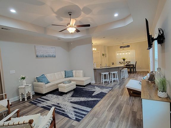 Newly constructed private home with driveway that fits 4-5 cars. Upscale decor and fully furnished. All new appliances. Cookware plates and glassware. Coffee bar. Washer/ dry in laundry room. One king, one queen bed, and 2 twin beds. 2 full bathrooms. Fully secured with ADP and Ring doorbell. Screened in porch with ping pong and air hockey table. Down the street from Ascension Hospital, Grand Blvd, Baytown Wharf, and Miramar and 30A beaches. Close to shopping restaurants, nightlife and beaches!! Furnished with dinner and cookware included NO SMOKING OR CANDLES IN HOME. No feminine products in toilet Be respectful of neighbors Owners with pay wifi ADP security/ring door bell included No cats allowed
