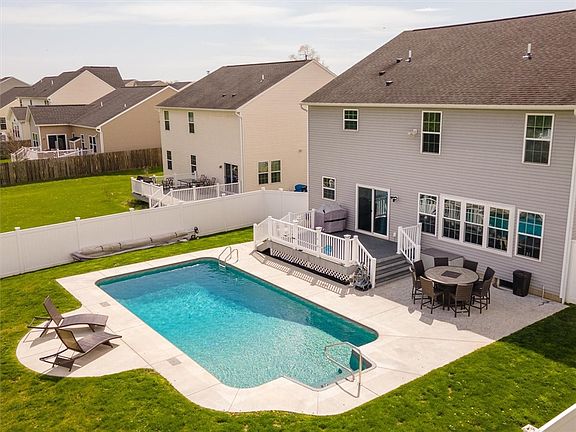 Welcome to 3100 sq ft, 4 bed, 2.5 bath 2012 Colonial Masterpiece! Ryan Homes ROME model. Convenient 1st-floor office, 2024 BEAUTIFUL light-stained hardwood floors. Step into the expansive family room w/ recessed lights, newer carpeting & gorgeous wall of windows. STUNNING kitchen has granite countertops, maple cabinets, walk-in pantry, backsplash '23, Gas cooktop, built-in ovens, fridge & microwave. SPACIOUS formal lLR & DR w/ detailed chair moldings. Upstairs, there is a loft BONUS room. The EXPANISVE primary bedroom suite impresses with beautiful en suite; a jacuzzi tub, glass-enclosed shower, double sinks, & 2 walk-in closets. Three HUGE additional bedrooms w/ newer carpeting. A convenient 2nd floor laundry includes washer/dryer. The finished 1100 sf basement has you entertaining in style w/ bar featuring sink, storage & mini fridge. Large room w/ closet & egress adds possibility for a 5th bedroom. Additional space for storage as well as future bathroom. Central AC ('22) & tankless water heater. Outside, heated Inground Pool ('22), Trex Deck, Stamped Concrete & Vinyl Fenced yard. DO NOT MISS this opportunity for luxurious living! Delayed Negotiations Tuesday (4/30) @ 10AM