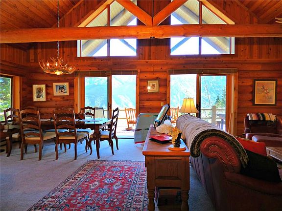 MOUNTAIN VIEWS ABOUND from this LOG CABIN LODGE Featuring Vaulted Ceilings, Open Concept, 3 Bedrooms plus 2 non-egress bonus rooms, 3½ Bathrooms, 2 Wood Fireplaces, Partially Covered Deck , Covered Lower Patio, Master Balcony. Includes an additional lot for privacy. Located in the upper Stillwater Valley in a Keypad Gated Community, fulltime Caretaker, Stocked Lakes, private access to Custer National Forest. GREAT GETAWAY to enjoy the peaceful mountain lifestyle. SIGNIFICANT Price REDUCTION.