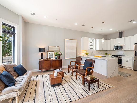 Situated in the heart of Jersey City Heights between Central and Sherman Avenue and a stone’s throw to Pershing Field Park, this impeccably designed new boutique condominium residence feature approximately 1400sf of generous indoor living space, 3 Bedrooms, 2 Bathrooms and windows on three sides. This sprawling residence is equipped with two serene bathrooms with Porcelanosa tiles and fixtures and a stunning chef’s kitchen featuring custom white cabinets, Samsung appliances, Quartz Calcutta countertop and backsplash, and sizable waterfall peninsula. The sumptuous primary bedroom suite includes a walk-in closet, en-suite bathroom and sliding glass doors. Further, this artfully constructed condominium is furnished with washer and dryer, Central AC & Heat and recessed lighting. Unit #3 boasts a private roof terrace with unobstructed views for miles, hardwood floors and bay windows. This beautifully proportioned residence is 22ft wide and centrally located convenient to restaurants, shops, markets, public transportations to NYC and parks. All buyers must contact Donald Matia @NJ Lenders 201-783-4397 for pre-approval.