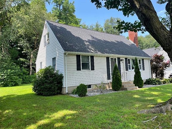 Beautiful well kept vinyl sided 3 bedroom Cape huge Master bedroom & 2 additionally large ones with plenty of closet space. The kitchen and living room with an open concept is modern, bright, and inviting with a new picture window, granite FP (newly pointed) hearth beautiful lighting fixtures and gleaming white oak hardwood floors throughout the whole home. The cabinets are complimented with black granite & SS appliances. The 2 full baths are tiled with style and have granite vanities. The home was just insulated, had efficient Mitsubishi's Heat Pumps w/ A/C installed, roof was replaced 6 yrs. ago, new Gas HW "On-demand", wide open basement (Washer & Dryer to remain), new electrical 6 yrs. ago, Anderson windows in great shape, newer solid core int doors, and a big 2-car garage. Extra huge decorated & heated breezeway too! Back yard is a private oasis with new patio for relaxation. Come view this gem! OPEN HOUSE for 1st showings Sat. July 29th 11:00 am-12:30 pm
