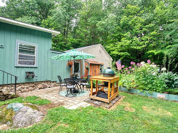 This Bungalow is a gardeners delight with 1.1 acres of open field filled with fruit trees (Peach, Plum, Cherry, Apricot), vegetable garden in raised beds (asparagus and rhubarb), and blueberry and raspberries. There is even a greenhouse complete with a coal stove to keep your seedlings warm on the cold spring nights. The original 1950 structure has fully applianced kitchen open to a living room with beautiful stone fireplace, two bedrooms and an office space plus a full bath. The connector has a utility and laundry room with pantry shelves in the hallway. The newer addition is currently a spacious workshop but could be Primary Bedroom suite, Artist studio or even a garage. Located just outside Hancock Village but close enough to hear the church bell ringing on a warm summer night. When you walk to the Village there is Norway Pond beach, Post Office, Town Hall, Bandstand concerts on Thursday nights and Farmer's market, Hancock Inn, Hancock Market, Fiddlehead's Cafe and one of the biggest libraries for a small town in NH. All showings will start July 27th at Open House 10am to 1pm.