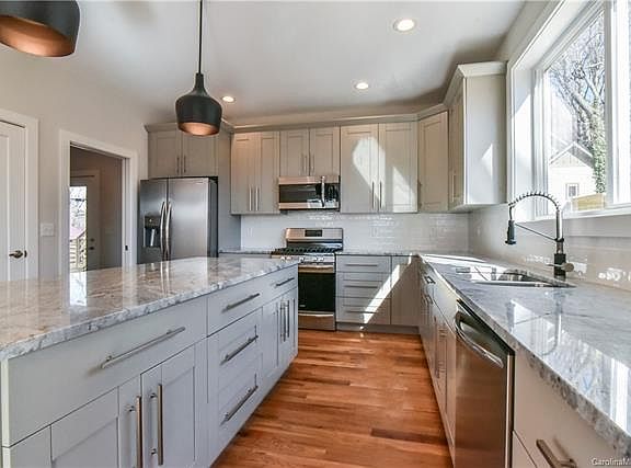 New Greenbuilt and Energy Star certified home in East/West Asheville on a corner lot. The home is conveniently located half a mile from Haywood Rd and Carrier Park on a quiet side street. The home has an open floor plan, lots of windows and natural light, a concrete patio in the flat backyard and a mud/laundry room. The kitchen features a large island, granite counter tops, upgraded stainless steel appliances and a large window overlooking the back yard. Large master suite with a walk-in-closet, double vanity, glass shower and large window for natural light. All bedrooms are large and have huge closets. Additional storage in the many closets through the house and the dehumidified crawl space.