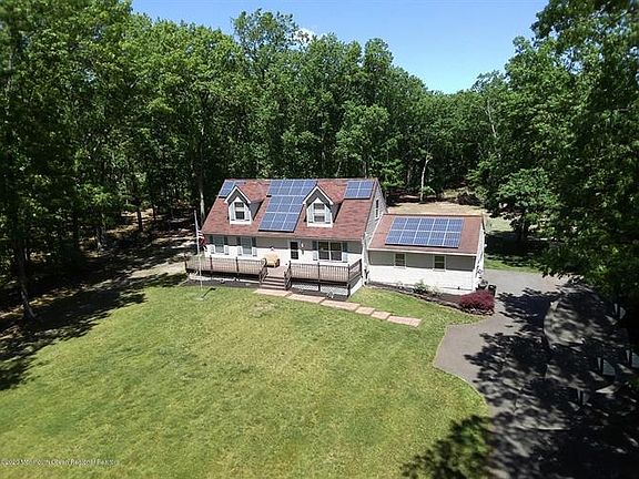This well-maintained, 4 bdrm, 2 bath , expanded cape, features a full finished basement and an over-sized 2-car garage with plenty of driveway parking along it's 300+ ft. paved driveway. This amazing 3- acre + property boosts its own nature trail and a one-of-a-kind 35 ft. fire-pit area., designed with Eco-Friendly glow-in-the-dark rocks from Core Glow. They surround the fire pit area and walkway making for a more enjoyable experience. The home is in move-in condition and close to Rt.9, 195, and the Parkway, and just over 12 miles to beautiful Belmar Beach. The property is also just over a mile from the Manasquan Reservoir and a new playground was built next door. Howell Township has some of New Jersey's outstanding schools.