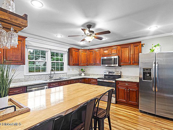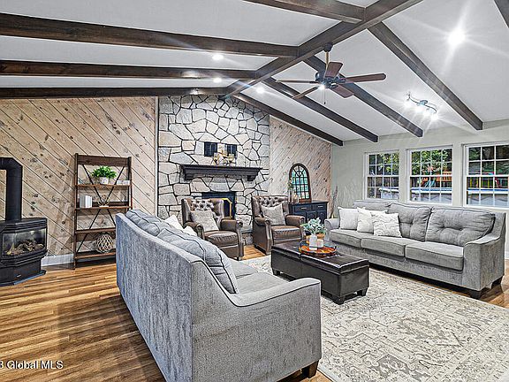 *Best & Final offers due Mon 8/28 at 3pm* Be amazed by this cleverly reinvented 4bed/2bath raised ranch on a leafy Guilderland street just minutes to superb retail & dining. Over $85k recently invested to update every last detail of this immaculate home. Enjoy a 1st fl devoted to cooking, dining & gathering in open yet cozy spaces. Relax in a family room oozing rustic charm w/stone fireplace & beamed ceiling. Whip up meals in the stylish kitchen w/cherry cabinets & granite counters. Eat in the formal dining area or grill & chill on the patio while the little ones play in the huge fenced yard or splash in the newer pool w/solar heater & robot vacuum. Upstairs you'll find 4 good sized bedrooms & a nicely updated bathroom, plus a large den. Central air.