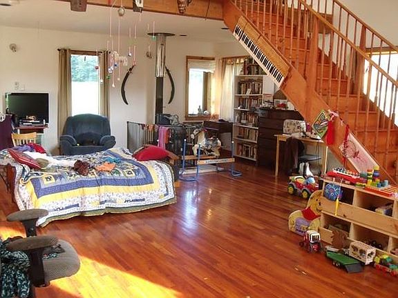 Williamsburg, modern home on (2.4 +/- acres) farmland, built 2008. Family owned land since 1790 is level, cleared, cultivated with ORGANIC farm stand history. Back 400' from highway for privacy, with nice pastoral and hillside views. Widely joins (168 acre) recreational forest with stream and trails. Metal roofed house has country kitchen, open floor plan living room, large loft, radiant floor heat, and wood stove. Additional farmland is available Much value at $199,000.