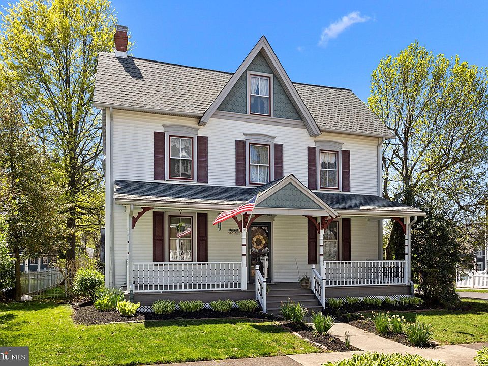 Showings will start on April 22nd. This classic Victorian located in Ivyland borough is filled with all the charm and character you would expect from that time period, but also offers all the modern conveniences of today which makes this magnificent home a true gem and a rare find! As you approach the home, you immediately notice the flowering trees, gardens, brick walkways, ornamental fencing and multiple ponds that set the mood for your journey back in time. As you step onto the composite front porch, the ornamentation of the railing alerts you to the craftsman's ship and detail that is found in the millwork throughout this home. Once inside, your are greeted with high ceilings, freshly painted rooms, refinished 2nd and 3rd floor random width flooring and an instant feeling of serenity. As you travel throughout the home, spacious rooms are everywhere. The first floor consists of the Living room, Dining room, a massive kitchen and family room area that leads to a covered patio overlooking the gardens, brick walkways and ponds. Additionally there is an extra large back entry area where the half bath and laundry room are located. The second floor consists of an added master bedroom suite complete with cathedral ceilings, multiple skylights and a sunroom that you will never want to leave. A full bath is also located on this level. The third floor offers an additional two very large bedrooms. As you travel to the back yard of the home, you notice the detached two story garage where the second level has been converted into a wood shop but would also be perfect for an art studio or other hobbies. The maintenance free exterior, Central Air, basement with french drains and all the modern upgrades makes this home the perfect sanctuary.