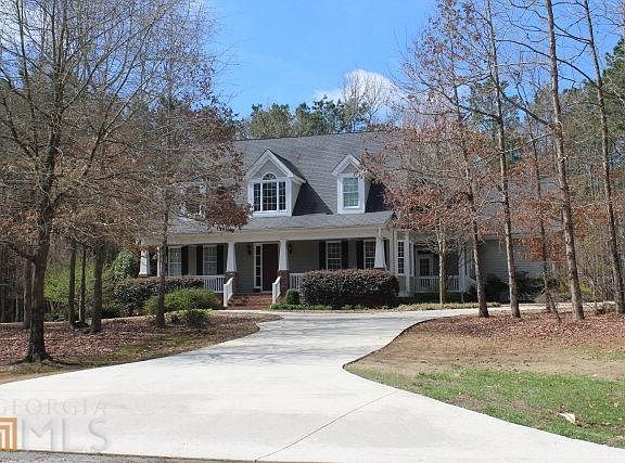 Gorgeous two story home with a rocking chair front porch in a beautiful setting. The level of finish in this home is amazing--extensive crown moulding, custom cabinetry in the kitchen and gorgeous hardwood floors. The open floor plan is perfect for large gatherings or just a night with the family. The kitchen features custom cabinetry, granite countertops and tiled backsplash. The main floor boasts a dining room, great room with fireplace that leads to a beautiful covered porch The spacious master suite has a seating area, large bath with shower and garden tub, and large walk in closet. The master suite also has French doors that lead onto the covered back porch. The main floor is completed by a laundry room with cabinetry and utility sink.