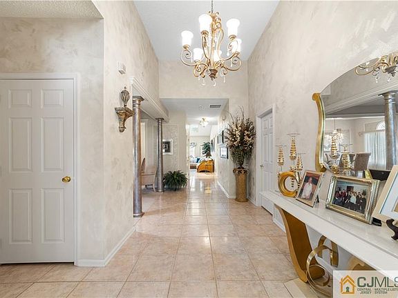Welcome to your dream home in the luxurious Greenbriar 55+ community, where resort-like amenities include indoor and outdoor pools, a golf course, bocce, shuffleboard, tennis, a craft room, and a state-of-the-art clubhouse. This immaculate, bright & airy home is situated on a desirable corner lot surrounded by professional landscaping. As you enter, you'll be greeted by a foyer with ceramic tile, a coat closet, and high ceilings that set the stage for the elegance found throughout the home. The graceful living room, highlighted by stunning shadowbox, columns, and upgraded trim that flows into the formal dining room. Both rooms are adorned with large picture windows and plush carpeting, creating a bright and inviting atmosphere. The dining room is conveniently located off the kitchen, which is equipped with recessed lighting, a pantry, ceramic tile flooring, and an open layout that extends into the breakfast nook and family room. The family room, with its vaulted ceiling, skylights, provides a cozy space for relaxation and has a door leading to the maintenance-free Trex deck with a gas line for the BBQ, perfect for outdoor entertaining. The primary bedroom is a tranquil retreat featuring a tray ceiling, laminate flooring, a huge double closet, and an en suite bath complete with two sinks, a tub, and a separate shower with a glass surround. The guest bedroom is conveniently located near the main full bath, offering comfort and privacy for visitors. Additional highlights include a laundry room with newer washer and dryer, and a one-car garage. This amazing home in Greenbriar is the epitome of luxury and convenience, offering a vibrant lifestyle in a beautifully maintained setting. Don't miss the opportunity to make this extraordinary, impeccable residence your own!