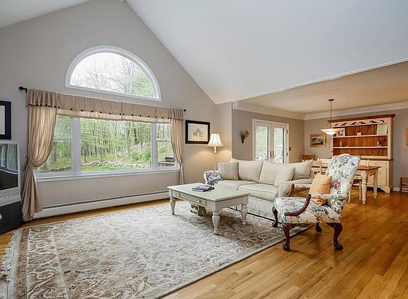 This home radiates a sense of tranquility. Privately set and beautifully landscaped, elegant simplicity best describes 84 Hattertown. A spacious foyer and bright living areas welcome you with open arms. The main level offers an open concept family room with a classic brick fireplace that leads effortlessly into the dining room and eat-in kitchen. Doors off of the formal dining area and kitchen lead out to a quaint patio and quiet back yard, dining options galore! The just right kitchen includes a pantry and mud/laundry room. Two main level bedrooms share a full bath. The master suite provides a soothing oasis with a dressing area, closet and separate shower area. A quintessential New England home, waiting for its next chapter to begin.