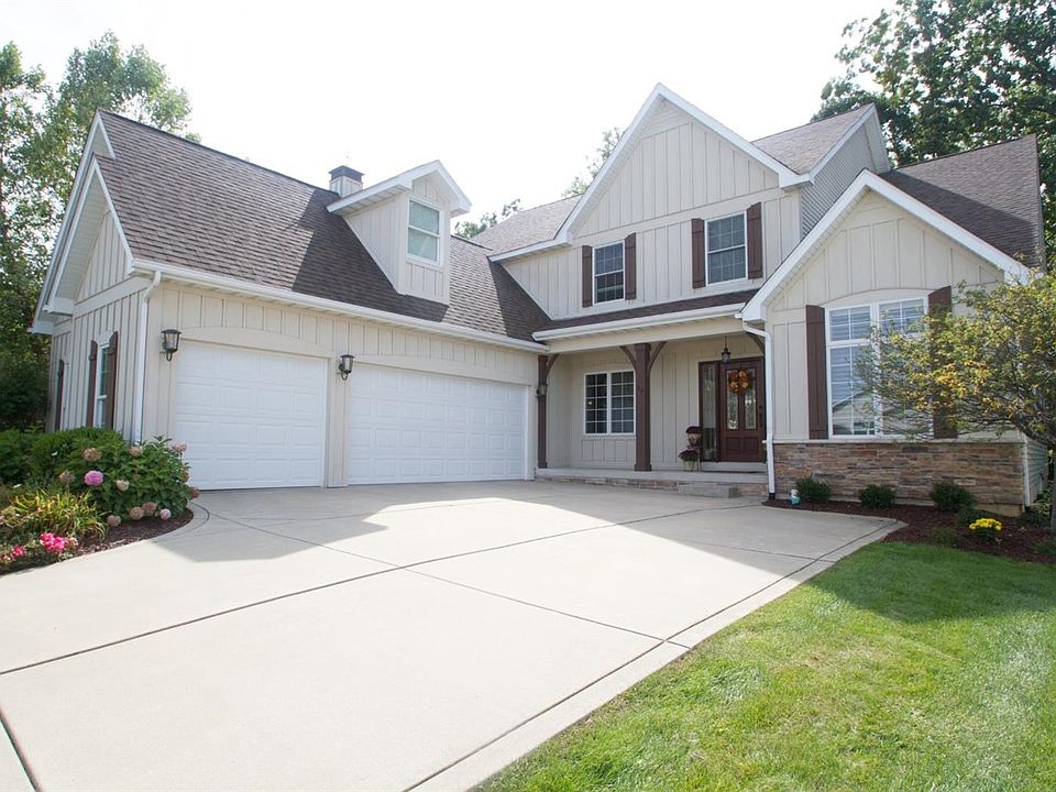 Wonderful home with many unique and special design features located in Aberdeen. Open concept with lots of space. Home office/den with beautiful vaulted ceiling and french doors. The great room has a vaulted ceiling with wood beams, soaring stone fireplace and hardwood flrs. Kitchen with custom ceiling and range hood, breakfast bar and large pantry is open to large dining space and great room. Main floor master suite with jetted tub, separate shower, as well as access to the patio. Main floor laundry and half bath. Upstairs has 3 generous bedrooms, all with large walk-in closets and extra storage closets in hall and upstairs bath. Basement AND bonus room are ready to be finished to your specs. 3 car side entry garage and WONDERFUL back yard with custom stone patio. Spectacular landscaping, in gr irrigation system, private wooded lot. Perfect entertaining space with multiple doors leading to the patio. Top of the line water softener, reverse osmosis. Enjoy all amenities of Aberdeen.