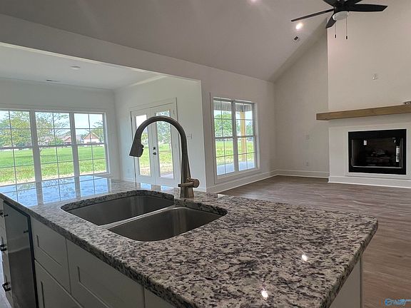 Beautiful new construction located just minutes from downtown Guntersville! This home is 2179 sq ft, three bedrooms, an office, two bathrooms, and a bonus room! Features in this home include granite countertops, LVP flooring throughout, walk in tile shower, free standing soaker tub, open floor plan on almost an acre!
