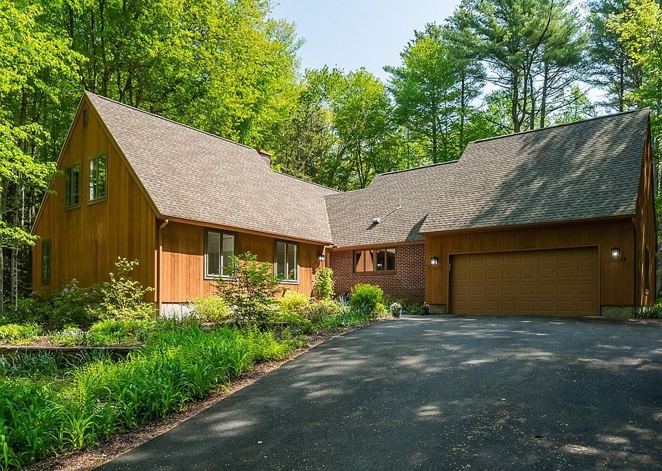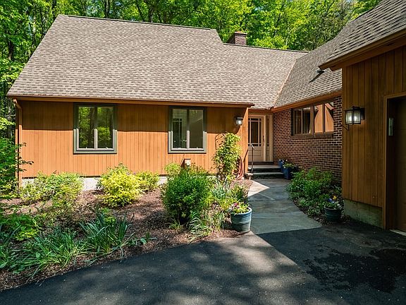 Just 10 minutes from Amherst center, this well maintained 4 bedroom, 3.5 bath Contemporary Cape is sure to impress! Great location off the beaten path and across the street from conservation land connecting to the Robert Frost trail and close to the Atkins Reservoir. The OPEN main living area is an entertainer''s dream, & includes a sitting area w/ access to a screened-in porch and hot tub, a spacious dining area and a STUNNING chef’s kitchen w/ soapstone counters, 6 burner Thermador gas range, cherry cabinets & large island. The separate living room features a pellet stove & deck access. The 1st floor primary bedroom offers a fireplace, access to the deck, plus an modern en-suite bath. Down a separate hall you’ll find bedroom 2, a home office and a full bath, ideally situated as a separate in-law/guest space. Upstairs are two oversized bedrooms plus another full bath. Attic access off bedroom 4 provides excellent storage. Attached 2 car garage, central air, newer septic & 50 year roof.