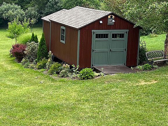 This home is especially beautiful due to the landscaping. This property is meticulously maintained by the owner. The beautiful lilies, roses, trees etc are lovely. Even the double shed is landscaped. It’s especially quite and properly named Mountain Meadows. It is tucked away and has only one way in and out.