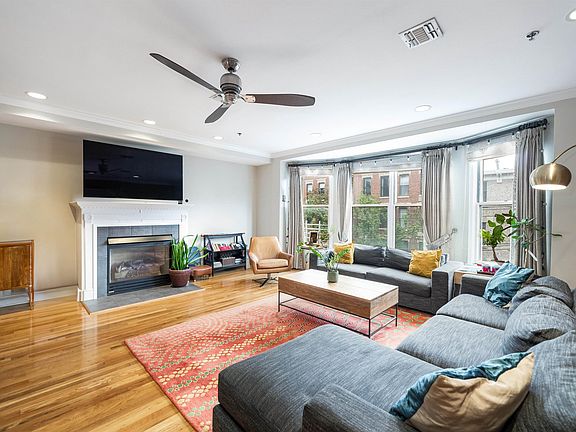 Sprawling and spacious, this 1807 sq foot 3 bedroom condo with parking in a downtown Hoboken elevator building has an ideal layout and stylish upgrades. The huge open living room / dining room and kitchen is made for entertaining. The kitchen has a breakfast bar, upgraded stainless appliances, including a Wolf range and hood, Samsung fridge with touch screen, wine fridge, granite countertops, striking tile backsplash, cabinets galore and a large pantry closet. With both eastern and western exposures, the home is flooded with natural light. Large primary features a walk-in closet and upgraded spa-like bathroom. The second bedroom easily fits a queen bed, and the den is the third bedroom that is ideal for a child's bedroom, nursery or office. Upgrades and amenities include: new vanities in the bathrooms, newer stainless appliances in the kitchen, updated LG in-unit washer/dryer, a cozy living room fireplace, hardwood floors, and newer HVAC unit, entry hallway with custom built in storage, and custom closets. One garage parking spot included. Common amenities include a spacious shared backyard, roof deck, and package room. Great downtown location, near Light Rail, PATH, parks, schools, and dining.