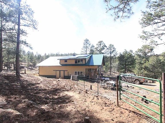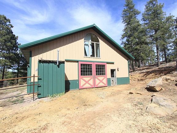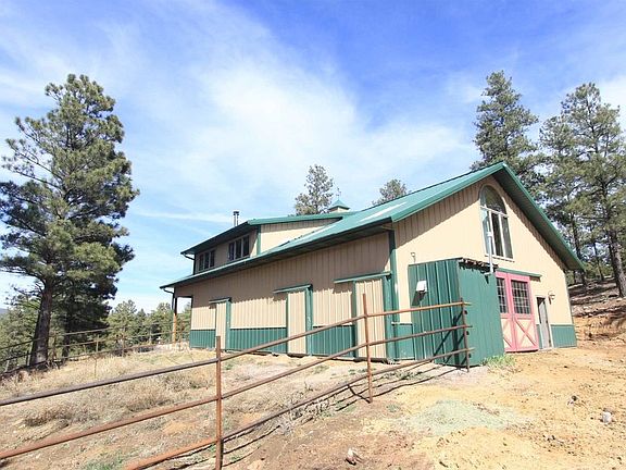 Horse Owners, take a look at this one of a kind property designed for a hands on horse people. Its a 20.8 acre mountain parcel surrounded by the tall pines. The parcel is fenced all around with smooth wire, has a 100' x 200' sand arena and a 66' round pen with slanted wood walls. The views from this arena will calm your wandering soul. The Barndominium consists of a 5 stall metal barn with heated & padded floors, heated nelson drinkers, pipe fence turn out, secure tack room, hay storage and a center aisle wash area. The main floor in the barn also has a shop area and double doors on each end. One appointment that you don't find everyday are living quarters above the barn. The "barndominium" has a very modern and up to date kitchen with fridge, dishwasher, gas stove and an amazing amount of cabinet & counter space. A dining and living area are next to the kitchen and both have pretty decent views of the La Cueva valley. At the far end fo the barndo is a bedroom area where you will find built in quarter sawn white oak chest of drawers and a walk in closet. Down the stairs is a washer & dryer area and of course direct access to your best friends.... There are other little important things about this horse inspired home that you will see on your visit, including, Solar Electric Pv and Dry Farm Ag Exemption. So... Come see this unique horse property. Its worth your time... Priced at $458,900 & this owner will finance, terms & conditions negotiable! Recently appraised at 460k