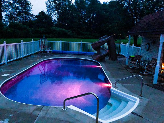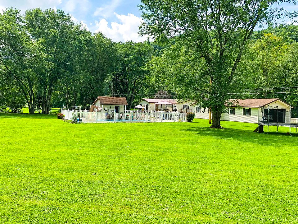 Amazing riverfront lot which consists of 3.44 acres. This 3 possible 4 bedroom home has 2 baths, open kitchen/dining area, a bonus room with an 8 person hot tub and tanning booth. The has an 200 amp electrical service. The outside grounds are just stunning. The 15'X 30' pool (pool structure - guaranteed for life) goes from 3' to 7', is heated, new liner, water slide, completely fenced in with it's own pool house. The pool house holds all the pool toys, chemicals and has its own bathroom. The pool house has 100 amp electrical service. The lot has a spot to park an RV as it has a hook up in place to septic, well and electric for a camper. The 4 bay garage has plenty of room for vehicles, toys, work bench and 100 amp electrical service. River and mountain views, quiet country road!Call today