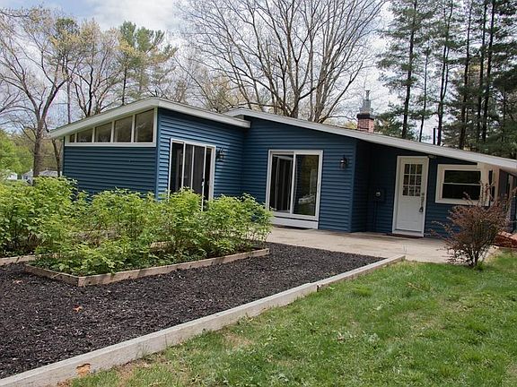 This beautiful ranch style home sits on over an acre with a lot of potential and privacy! The 2 spacious bedrooms have their own deck/concrete patio, built-in/walk-in closet and natural sunlight. New hardwood floors throughout, besides the updated bathroom which is tiled, along with the shower which has a nice glass door. The updated kitchen has new granite counter tops that sit on new cabinets, along with stainless steel appliances, and also has a pantry There is a nice dining area and living room. The heating system is new and is A.C. Ready! Gas hot water heater is new. The vinyl siding, replacement windows and sliding glass doors are all new. The roof was done in 2016 . New seamless gutters. The private concrete patio in back is surrounded by a nice garden bed area.It also has 2 storage sheds, garden beds and fruit trees. There is a 20' x 20' platform that could potentially be made into a large shed or garage. Come make it your own!