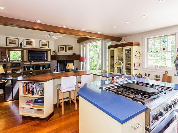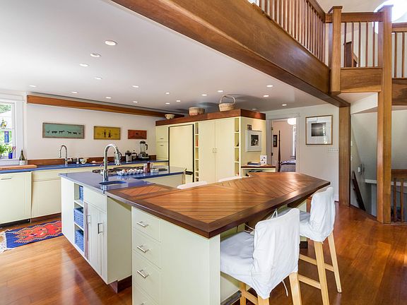 A true oasis nestled among the oaks on over 3 acres of land. Architect designed and crafted with the finest materials and highest level of workmanship. The home offers a quiet and warm environment that entrances, calms, and intrigues while offering comfort that flows from the carefully thought out design and exquisite surroundings. A little over a mile to Quammox Preserve and direct access to Katama Bay.An open, L-shaped plan provides a large living and dining room with 16' ceilings as well as the kitchen area with adjacent breakfast spot. Elegant staircase crafted of Angelique leads to loft area above the living space. There is also a sitting room/den off the entry hall, adjacent to main living area (that can readily double for overflow sleeping as there is a full bath across the hall). The living areas are connected to the sleeping wing of the house by the pool link which is initially accessed from the main entry. A gracious stair descends to the pool area with rock waterfall - functional in the pool filtration system as well as aesthetically and pleasing. The gunite lap pool has been designed to function without chemicals of any kind and systems installed to make certain that there is neither excess moisture nor odor from the pool. The pool deck is constructed of Wana and provides for a very pleasant and nearly zen like sitting area adjacent to the pool and looking through french doors to the outside. The master bedroom opens directly onto the pool deck and is exceptional in proportions with angled ceiling and circular skylight with an incredible walkout master bath that features an indoor/outdoor soaking tub. The master also has french doors accessing a private patio. The sleeping wing also includes a second bedroom and bath as well as the laundry accessed by a separate exterior entrance so handy from the beach. Two separate cottages mimic and complement the main dwelling in architectural design. The two are adjacent to one another and connected by fir decking. One cottage offers a bath and outdoor shower so the two can function separately as bedrooms or together as one living unit. The total square feet of the two cottages is 400 sq feet so a future guest house is still able to be constructed on the lot if desired.