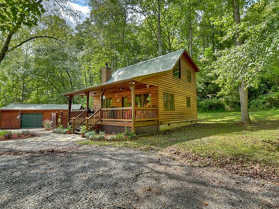 Adorable furnished cabin located between Blue Ridge and McCaysville on 4 lots. Circular drive makes for ample parking and access. The lot is level and is usable. There is a bang up outdoor entertainment space enclosed with a fence. There is a fire-pit to enjoy cool evenings and a hot tub in a screened in. There is also a full sized garage/workshop( could possibly be turned into a bunk room.) The interior of the cabin is cozy and warm. Cathedral ceilings and a welcoming fireplace. There is a space for a kitchen table. There is one bedroom on the main and one upstairs with a loft room currently used as an office. This cabin is a true charmer and would make an amazing rental or weekend getaway.