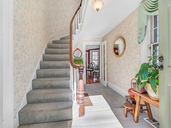 OPEN HOUSE CANCELLED. OFFER ACCEPTED. Located in the heart of the village center, this beautifully maintained antique home is move in ready. A graceful front entry with decorative moldings, curved wooden banister and high ceilings welcome you! Gleaming wide pine floors flow from the sunny living room to the large dining room with bay windows and built in cabinetry. The rear kitchen has been remodeled but retains vintage brickwork. New SS fridge, stone countertops, eating area and slider with views to the private back yard. A cozy den/family room off of the kitchen is perfect for TV watching. First floor office with full bath. First floor laundry and mudroom area offers surplus storage. Front and rear staircases lead to second floor with four bedrooms and another full bath. Walk up attic provides great storage. New roof 2 years old. New gas furnace 2 months ago. New hot water heater & sump pump. Private, fenced back yard with two patios. Fence new last fall.