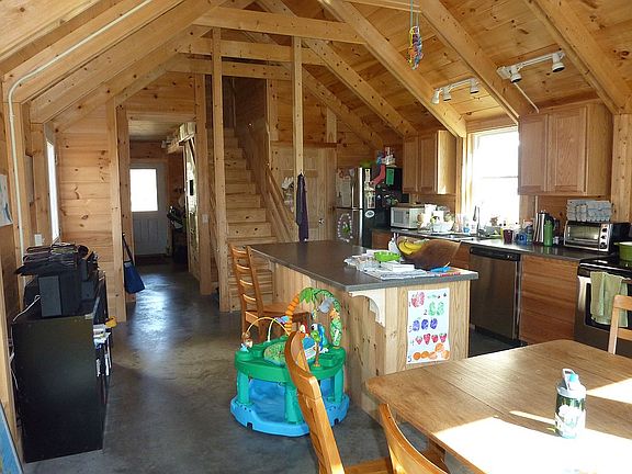 3 bedroom, 2 full bath house for sale in Randolph, Vermont. Located in a quiet neighborhood near the village downtown, a few minutes from I-89, and walking distance from the local schools. On a private drive with no through traffic. One bedroom and full bath on the first floor. This cozy and clean eleven year old home has an all pine interior and exposed beams. 1.4 acre lot. The radiant slab is heated by a super-efficient, on-demand boiler. Solid top counters and stainless steel appliances in a light-filled kitchen with cathedral ceiling. High speed internet available. Includes washer/dryer and dishwasher. Vermont Technical College, Gifford Medical Center, and Chandler Music Hall are all nearby. Needs nothing. Ready to be lived in. Mountain bike or hike right from the house. Half-hour to Montpelier, 20 minutes to S. Royalton/Vermont Law, 40 minutes to Hanover, NH. Buyer's agents welcome. Call or text 802-249-2280