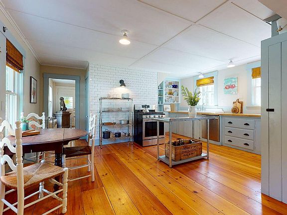 Colonial era farmhouse set on 2.8+ acres with 775 feet of sandy frontage on Pleasant Lake. Located just .3 miles from Casco Village this home offers a lovely four season sunroom with vaulted ceilings, a formal dining room with built-ins, and an eat-in kitchen with wide pine flooring. Beautifully updated, this farmhouse offers historical charm and plenty of room with 6 bedrooms and 4 and a half luxurious bathrooms, an outbuilding for games or hobbies, a private dock on Pleasant Lake, and plenty of storage in the attached barn. Enjoy the summer months on the water and the winter months close to the ski resorts.
