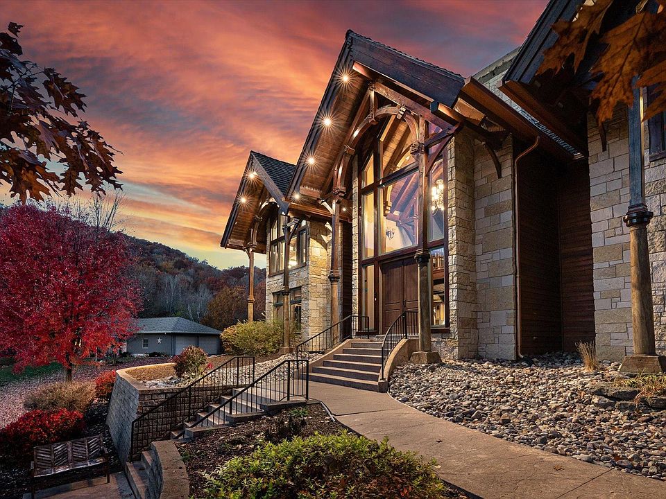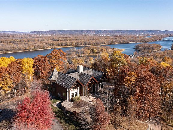 If you're looking for a home that will provide plenty of space to entertain, then look no further than this luxurious timber frame house! The main level offers Brazilian cherry floors w/ radiant in-floor heat, a chef's kitchen w/ cherry cabinets, granite countertops, large island, & dual oven/gas cooktop. Large family/rec room w/ wet bar & main level laundry. With 5 spacious bedrooms and 3.5 baths it will provide plenty of space for your family & guests! The primary bedroom features vaulted ceilings, walk-in closet & an attached bathroom with dual vanities, walk-in shower & jetted tub. The walkout lower level has a large family room, home theater and access to the 3 car garage. Enjoy the large multi-level decking & patio while enjoying the stunning views of the Mississippi river.