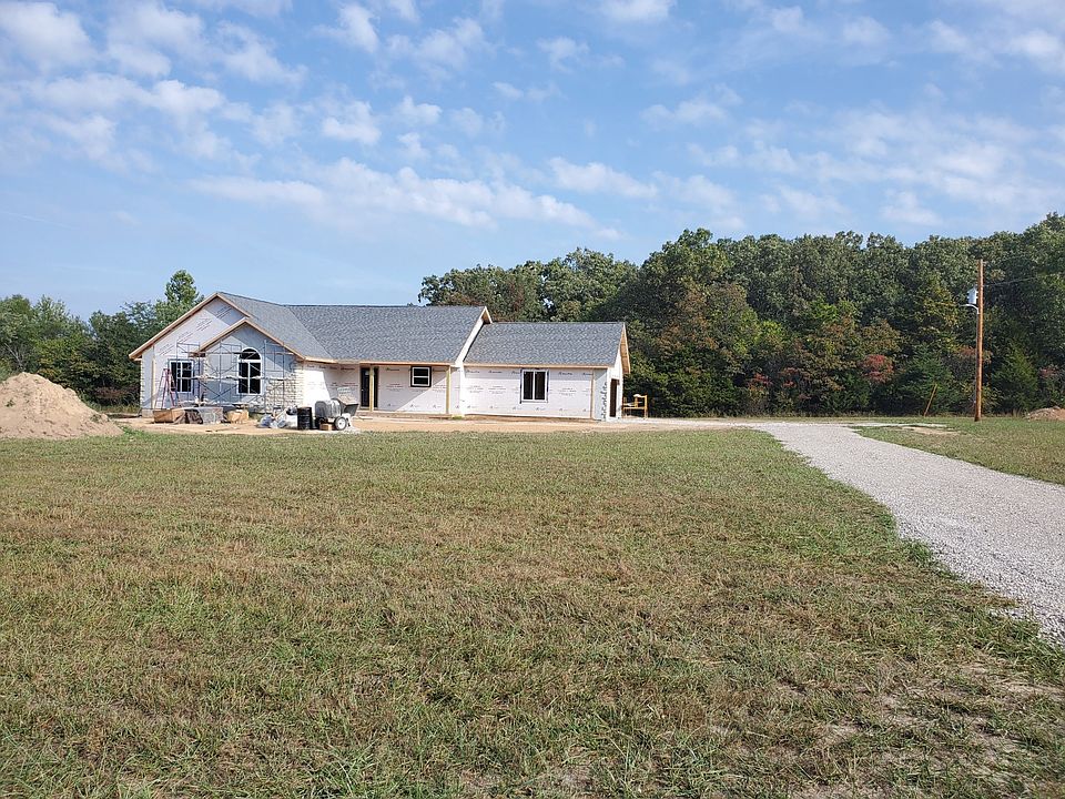 This quality country home has two large bedrooms and one large Master suite, with a cultured marble walk in shower and double bowl vanities and a jetted corner jacuzzi tub with tile accents, and a walk-in closet. Tile floors in bathrooms and laundry. Custom hardwood flooring in kitchen, dining and living room and hallway. Cathedral ceilings in main living area and one bedroom has a cathedral ceiling and the Master has a coffered ceiling. Kitchen has custom built cabinets with crown molding and granite counter tops. Stainless steel appliances. Built in wooden closet shelves and rods in closets. Laundry room has cabinets with counter top with built in sink. Built in linen in hallway. Exterior of home is vinyl and cultured stone. Off of the living area is a covered porch with a beautiful scenic view. Call now and you can pick out your colors.