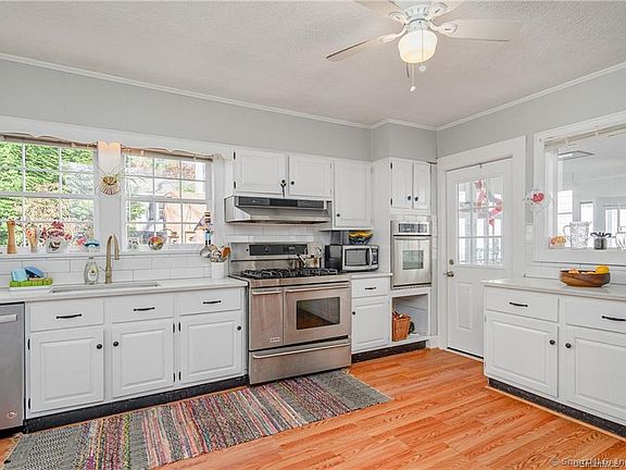 Beautifully restored 4BR/3.5BTH Colonial with garage and 3 levels of living space ready for occupancy March 1. Situated close to the center of town and Rt.84 on a beautiful lot just minutes to shopping, restaurants and all that Newtown has to offer. The expansive layout is flooded with natural light, hardwood floors on all 3 levels and updates throughout. The first floor boasts a BRAND NEW kitchen with soft close cabinetry and quartz countertops that opens to a formal dining room & a fireplaced living room with access to an enclosed wrap around front porch overlooking the lot, a half bath and laundry area. On the second floor you'll find 2BRS, a full bath and a Primary Suite with a fireplace and full bath. Upstairs, there is a 4th BR with vaulted ceilings and a full bath. All this plus a 2 car garage, central AC, laundry, natural gas heat/hot water, solar panels to keep electric bills low and additional storage in the basement. **NO SMOKING -Good credit, references and income verification required **