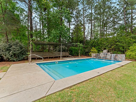 Just in time for summer, dive in to this beautiful home that will make each day feel like ''vacation mode''. Enjoy a peaceful setting while still being close to daily conveniences. The newly refinished hardwood floors are the star of the show and run throughout the main floor and part of the second level. The main floor primary suite looks onto the private backyard and beautiful pool and includes a bath with dual vanities, tub and separate shower, a water closet for privacy and a walk-in closet. You'll notice excellent craftsmanship throughout this home, from moldings to window trim, the details are numerous. Once upstairs you are surrounded by light from the windows in the 2 story family room. The extra large bonus room with flex space has endless possibilities for kicking back to relax or having fun. Maybe you'll add a huge sectional for movies or sports watching. You could create a home gym or add a game table. The flex space just off the bonus room would make a great office, yoga room, video game room or it could be additional space for guests. The upstairs bath is separated into 2 rooms making it easier for occupants or guests to share the bath. The highlight of this home is just through the back door. Step out onto the expansive porch and enjoy the view of your heated, saltwater pool. Listen to the relaxing sound of the fountains and jets. The graduated entry steps make this pool easy for friends and family of all ages to enjoy. Look around and take in all the green. The backyard will be filled with the scents of summer any day: mature jasmine, gardenias, your own fig tree, and beautiful, wisteria. When you want to get out and about, you're close to I-40 and the 540 outer loop, making your commute (or your weekend plans) a breeze. The two-car garage with insulated door is a bonus. This home provides a wonderful retreat and a peaceful place to relax on your own or entertain friends and family. —it's your new spot for making memories that feel a little extra special each day. If you're looking for that sweet spot between convenience and being away from it all, this is it!