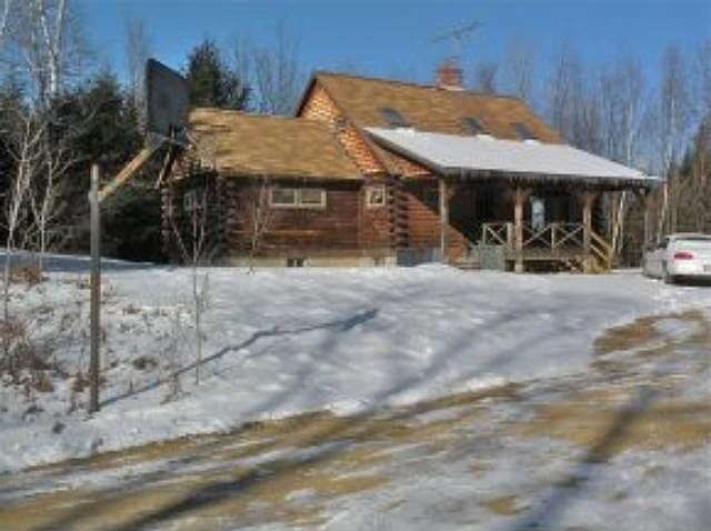 Nature Lovers Dream! Private Log Cabin tucked away on 16.5 Bring your outdoor toys! This log cabin has a very over-sized 2 car detached garage off a long private driveway with an open field along side the house. Eat-n kitchen, large family room, large first floor master and full bath. Second floor bedroom or library and craft room, could be used as 2 bedrooms. 3/4 bath upstairs. First floor has a fresh coat of paint and new flooring.