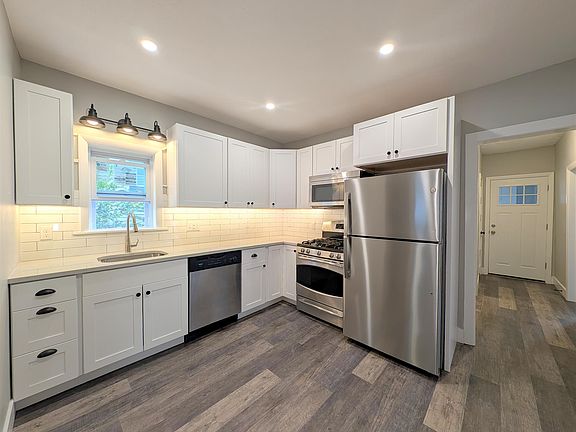 2+ bed 1 bath apartment on the 1st floor of a Two-Family, modern eat-in kitchen with stainless appliances including dishwasher, dining room, deck, yard and free laundry in the basement. Located in the Tufts area just north of Teele Square. (Reference #138827)