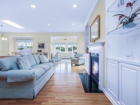 Sought after location in Village Crossing!! Pristine newer 2 bedroom, 2 1/2 bath condominium close to White Horse Beach, Pinehills Country Club, restaurants and shopping! Designer built home with hardwoods in living room, dining area, kitchen with recessed lighting throughout! Beautiful warm cabinetry with granite countertops in kitchen and baths. The primary bedroom enjoys an en suite bath. The full laundry room is off of the 2-car garage. Open railing leads to a partially finished lower level with high basement ceilings, full walkout with slider, additional half bath and plenty of storage. Whether cozying up to the gas fireplace or sitting in the light filled sunroom, each room will bring comfort and serenity to your packed filled day! Perfectly balanced between an active over 55 community and a quiet peaceful retreat to relax in your open concept home. All appliances included, even the washer and dryer! Energy star Central A/C. Don't miss this opportunity- won’t last!!