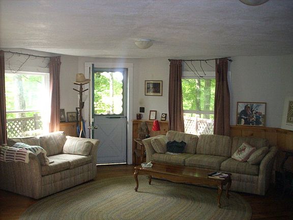 This nice camp located across the street from the St Reggis river is in a great location set high up on a hill side surrounded by woods and very secluded. Camp has hardwood floors in living room. Also a wood stove and is very efficient to heat. There is a large deck attached to the front with a nice view of the river. Must see to be appreciated.