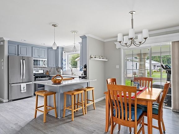 - Features: Flooring - Vinyl, Dining Area, Countertops - Stone/Granite/Solid, Breakfast Bar / Nook, Cabinets - Upgraded, Open Floorplan, Recessed Lighting, Remodeled, Stainless Steel Appliances, Gas Stove, Lighting - Pendant, Crown Molding